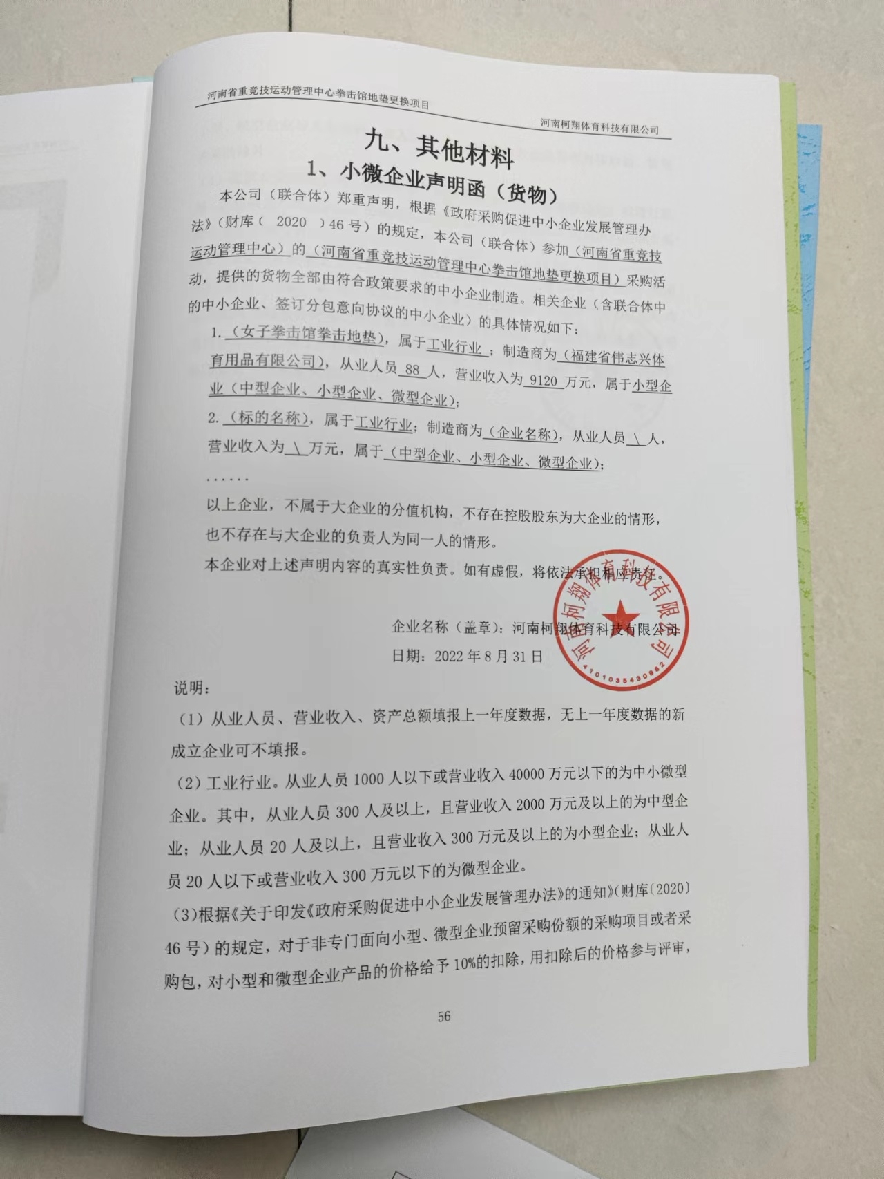 一、采購項目名稱:河南省重競技運動管理中心拳擊館地墊更換項目