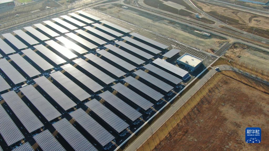 這是在遼寧省沈陽(yáng)市的華晨寶馬鐵西新工廠(chǎng)拍攝的光伏發(fā)電設(shè)施(12月28日攝,無(wú)人機(jī)照片)。新華社記者 楊青 攝