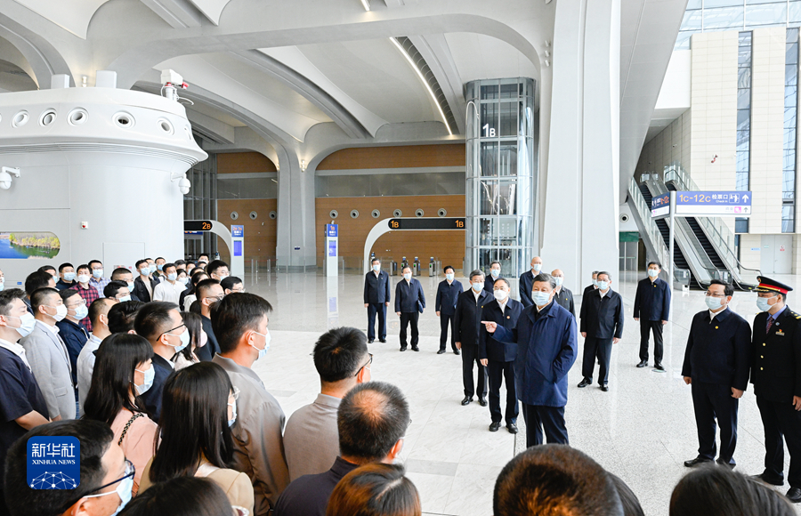 5月10日,中共中央總書記、國家主席、中央軍委主席習(xí)近平在河北省雄安新區(qū)考察,并主持召開高標準高質(zhì)量推進雄安新區(qū)建設(shè)座談會。這是10日上午,習(xí)近平在雄安站考察。新華社記者 李學(xué)仁 攝