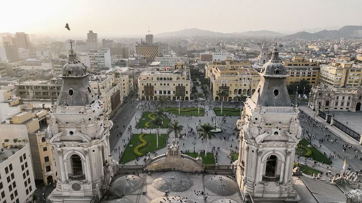 ??這是10月13日拍攝的秘魯首都利馬武器廣場(無人機照片)。新華社記者 李木子 攝