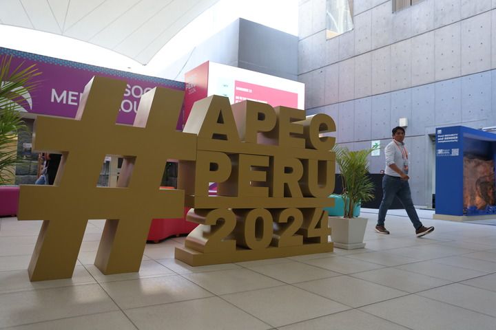 ??這是11月8日在秘魯利馬拍攝的2024年亞太經濟合作組織(APEC)會議標識。新華社記者 許睿 攝