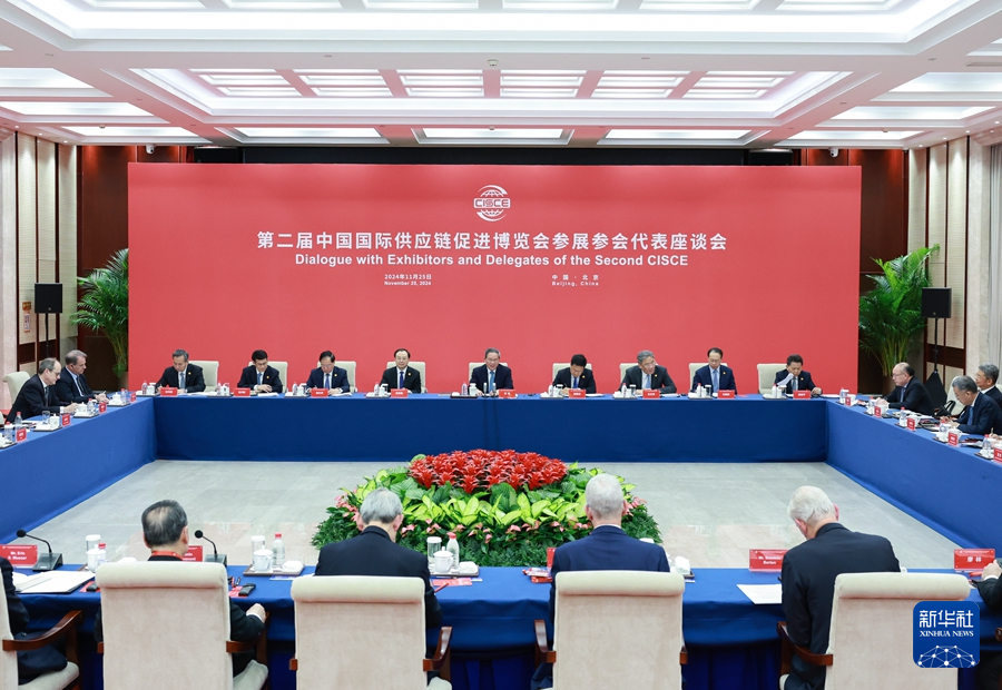 ??11月25日,國務院總理李強在北京同第二屆中國國際供應鏈促進博覽會參展參會企業(yè)代表座談。新華社記者 王曄 攝